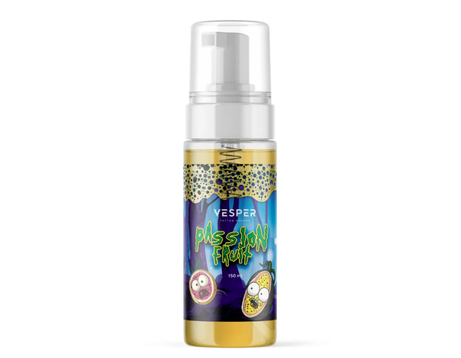 Піна антисептична із запахом Маракуйя від Української компанії VESPER TATTOO. Готова до застосування професійна активна антибактеріальна піна для обробки та очищення шкіри татуювання під час нанесення татуювання, створена на основі м'яких природних компонентів. Не містить сульфатів.