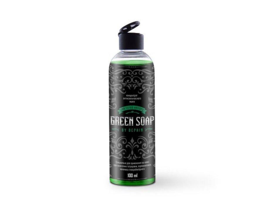 Мильний дезінфікуючий концентрат Depain вбиває мікроби та бактерії, забезпечує захист від інфекції, ефективно очищує шкіру від барвників. Має специфічні властивості та ідеально підходить для дезінфекції шкіри при нанесенні татуювань, перманентного макіяжу та мікроблейдінгу, також використовують у косметологічних процедурах, до та після процедур лазерної епіляції. Місцевий антисептичний засіб для дезінфекції шкіри та інструменту при проведенні косметологічних процедур. Відмінно очищує шкіру від вазеліну, всіх типів косметичних барвників, знімає подразнення та набряклість.