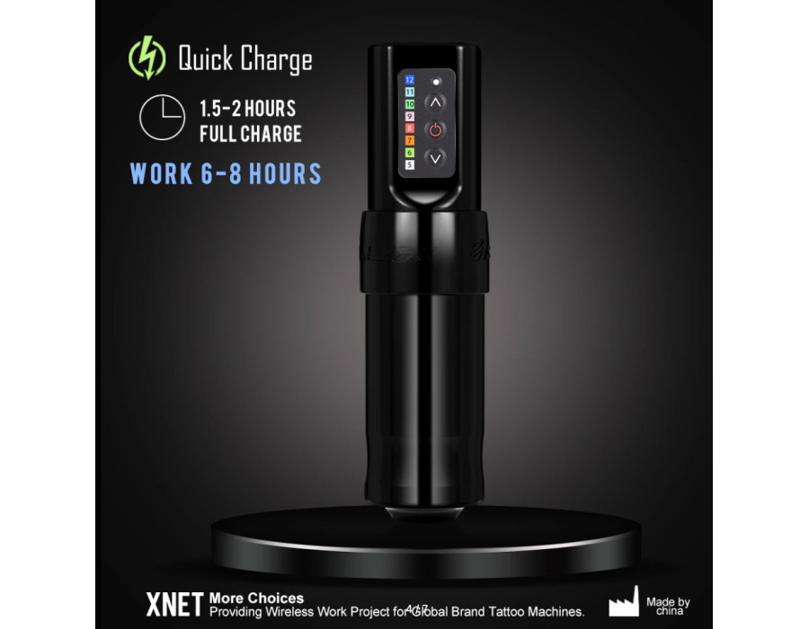 - Вхід USB-C: можливість заряджати бездротову тату-машину в машині, через ноутбук або в аеропорту.