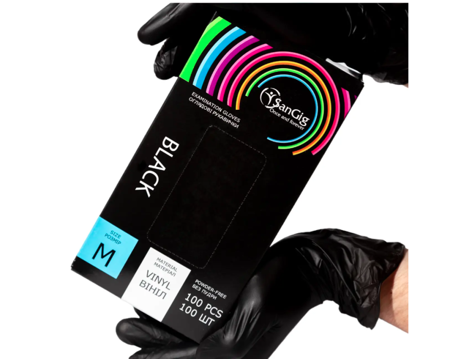 Нітрилові оглядові рукавички SanGig, чорні — 100 шт