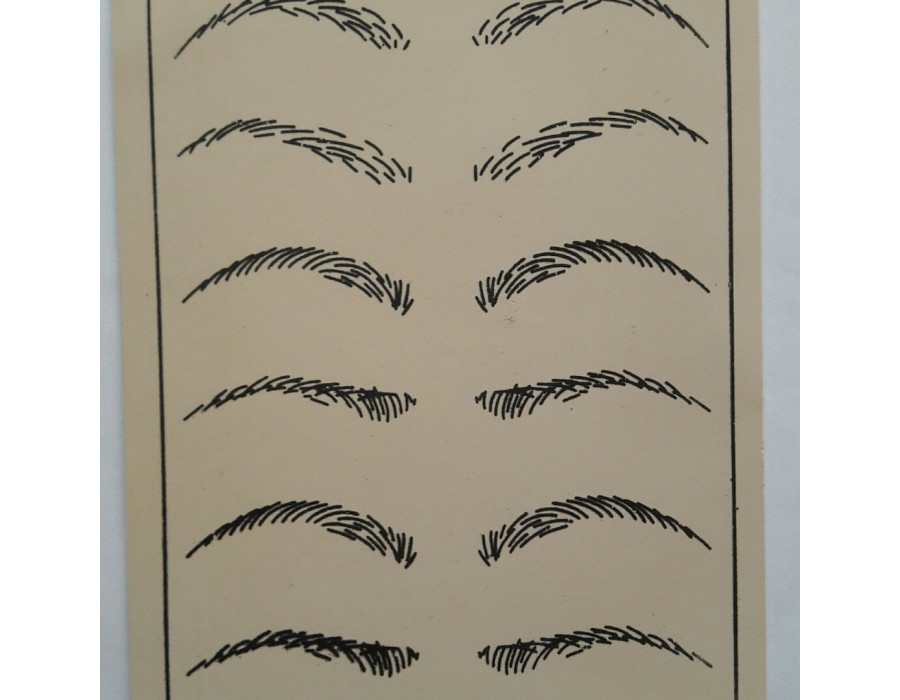 Training tattoo panel with different variants of “Eyebrows” image for practicing the skills of hand placement and different techniques of pigment application.