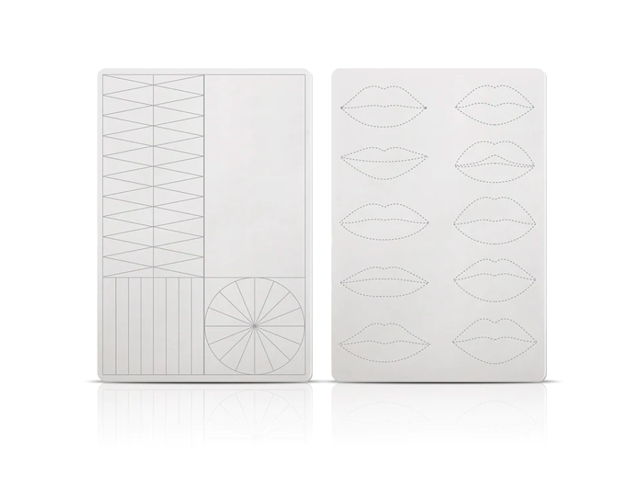 Training tattoo panel with different variants of the image “Lips” for practicing the skills of hand placement and various techniques of pigment application. Imitation of skin allows you to train and practice with the hair method. Designed for beginners who want to get practical skills in all aspects of the master of tattoo or permanent makeup, and for professionals, teachers of courses or organizers of training in the field of beauty.