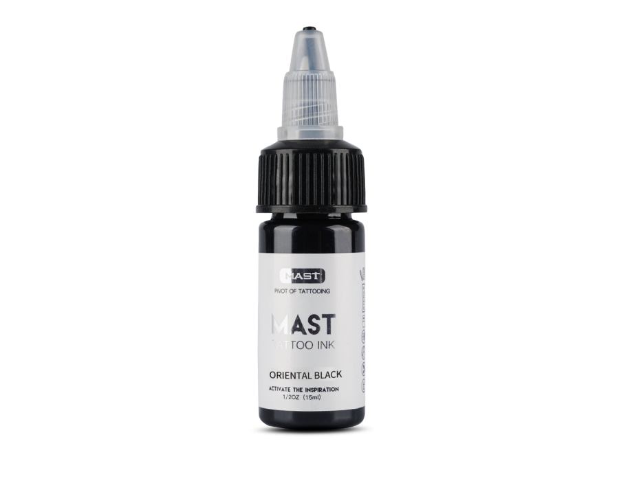 Mast Tattoo Ink - це фарби преміум-класу, створені для того, щоб забезпечити художникам сміливіші та довговічніші кольори. Це чорнило легко проникає в шкіру, яскраво виділяється і зберігає свою темряву навіть після загоєння. Oriental Black (самурайський чорний). Використовується для: традиційних робіт, японського стилю, розфарбовування великих площ.