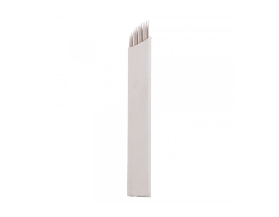 Гостре лезо для промальовування найтонших волосків, що представляє собою спайку з 12 голок.Голки №12 для мікропігментування, мікроблейдінгу та ручного татуажу. Одноразові і знаходяться в стерильних упаковках.