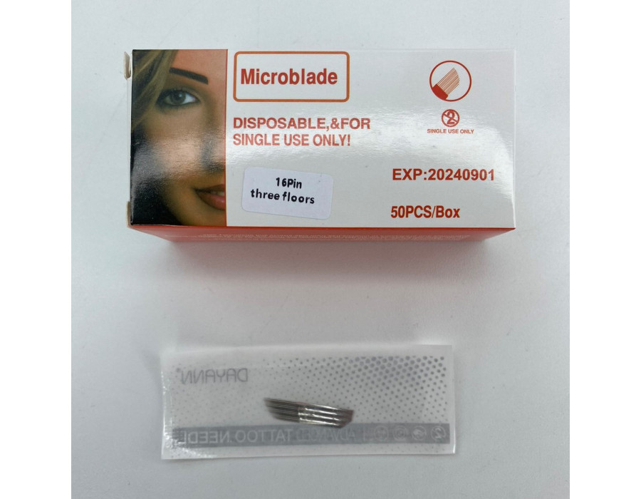 Гостре лезо для мікроблейдінгу, що представляє собою спайку з 16 голок в три поверхи.