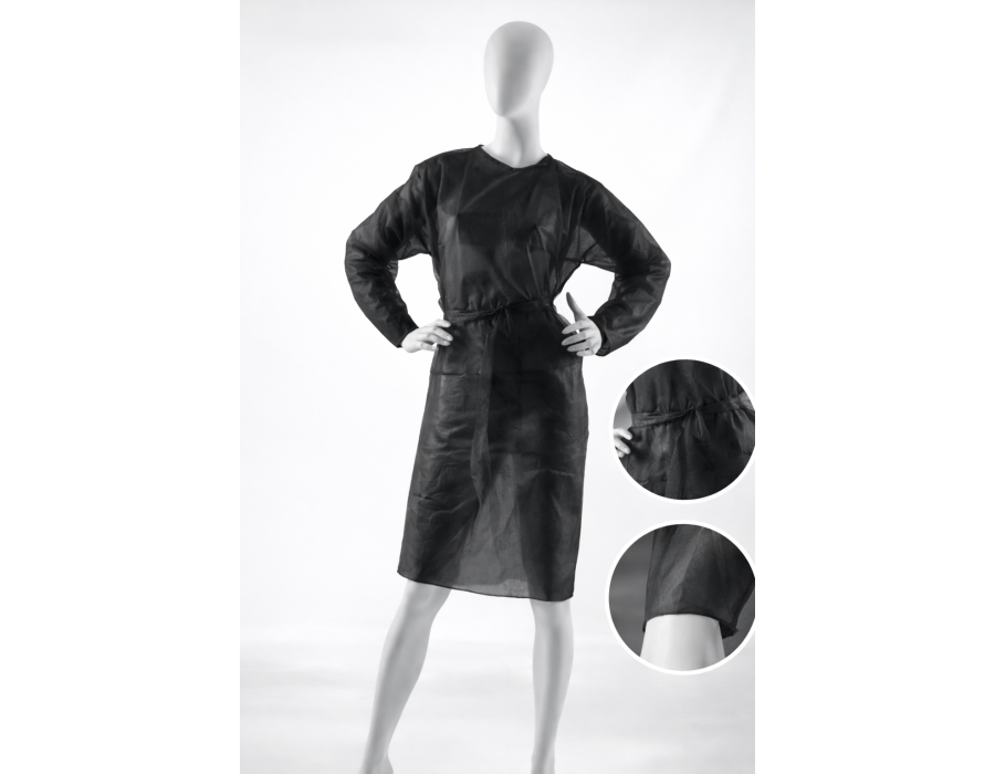 Халат-кімоно одноразовий з довгим рукавом, подовжене плече, пояс