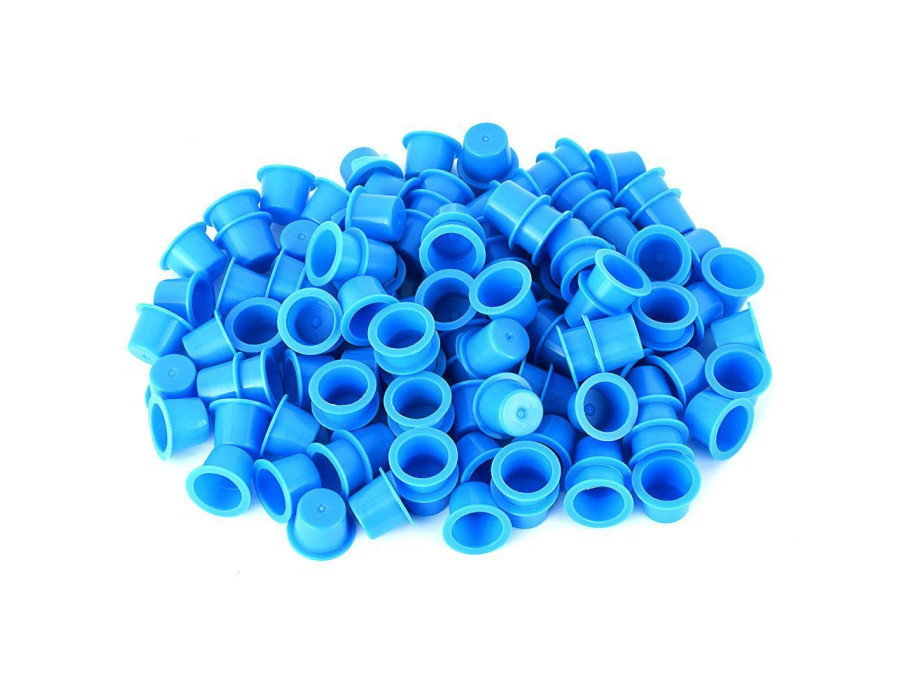 Ковпачки для тату-фарби дозволяють не лише змішувати різні кольори, а й тримати під рукою відразу кілька готових відтінків. Широка основа ковпачка запобігає перекиданню.