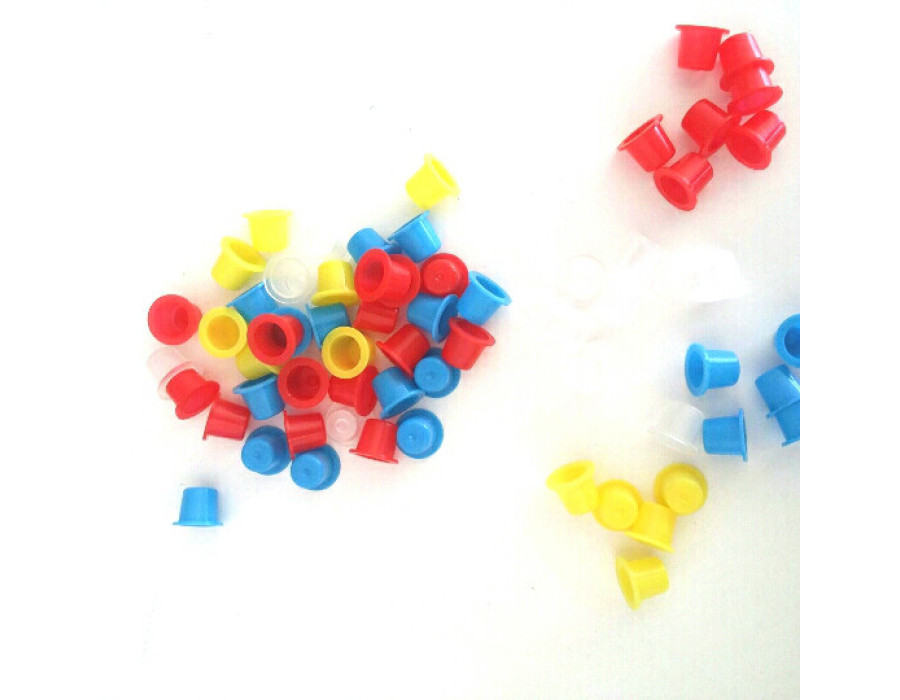 Ковпачки для тату-фарби дозволяють не лише змішувати різні кольори, а й тримати під рукою відразу кілька готових відтінків. Широка основа ковпачка запобігає перекиданню.
