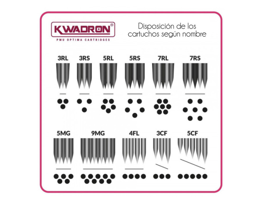 Картриджі Квадрон – це якість виробництва та ідеальні голки, ідеальне балансування голки дозволить працювати з комфортом, не зважаючи на люфт голки в носику. Система подачі голки картриджа Kwadron влаштована таким чином, що пігмент не буде проникати через задню частину модуля і потрапляти в машину. Підходять для всіх машинок типу "pen" і сумісні з тримачами всіх відомих виробників. Кожен картридж простерилізований та окремо упакований. Стерилізований з використанням газу окис етилену.