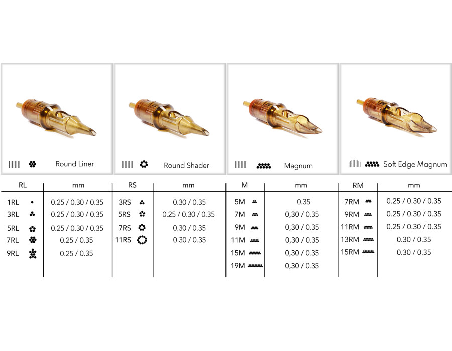 Картриджі Квадрон – це якість виробництва та ідеальні голки. Ідеальне балансування голки дозволяє працювати з комфортом, не зважаючи на люфт голки в носику. Система подачі голки картриджа Kwadron влаштована таким чином, що пігмент не буде проникати через задню частину модуля і потрапляти в машину. Підходять для всіх машинок типу "pen" і сумісні з тримачами всіх відомих виробників. Кожен картридж простерилізований та окремо упакований. Стерилізований з використанням газу окис етилену.