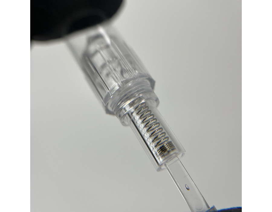 Завдяки защіпному механізму насадки надійно фіксуються на пристрої, забезпечуючи стабільну роботу без збоїв. Довжина голки регулюється, що дозволяє адаптувати процедуру для різних зон обличчя та тіла.