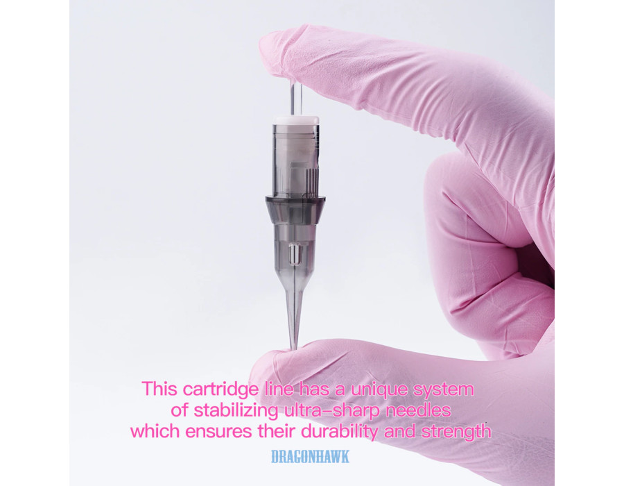 - Картридж має унікальну систему стабілізації надгострих голок, яка забезпечує їхню міцність та довговічність.