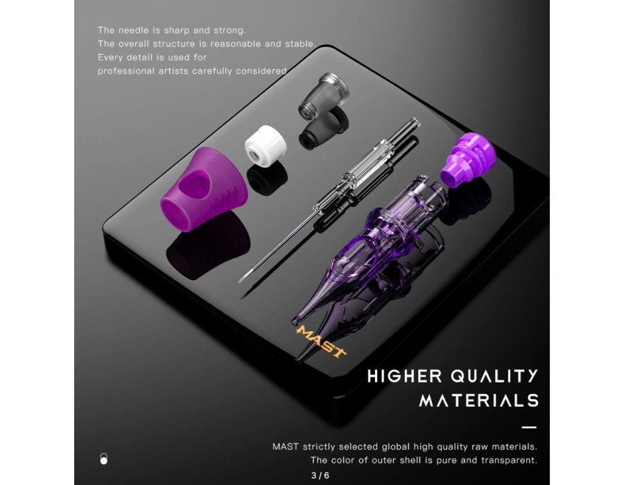 Тихий і стабільний звук роботи Mast. Картриджі значно спрощують роботу майстрів татуажу у зв'язку з простотою їх заміни, адже для зміни картриджа потрібно лише кілька рухів.