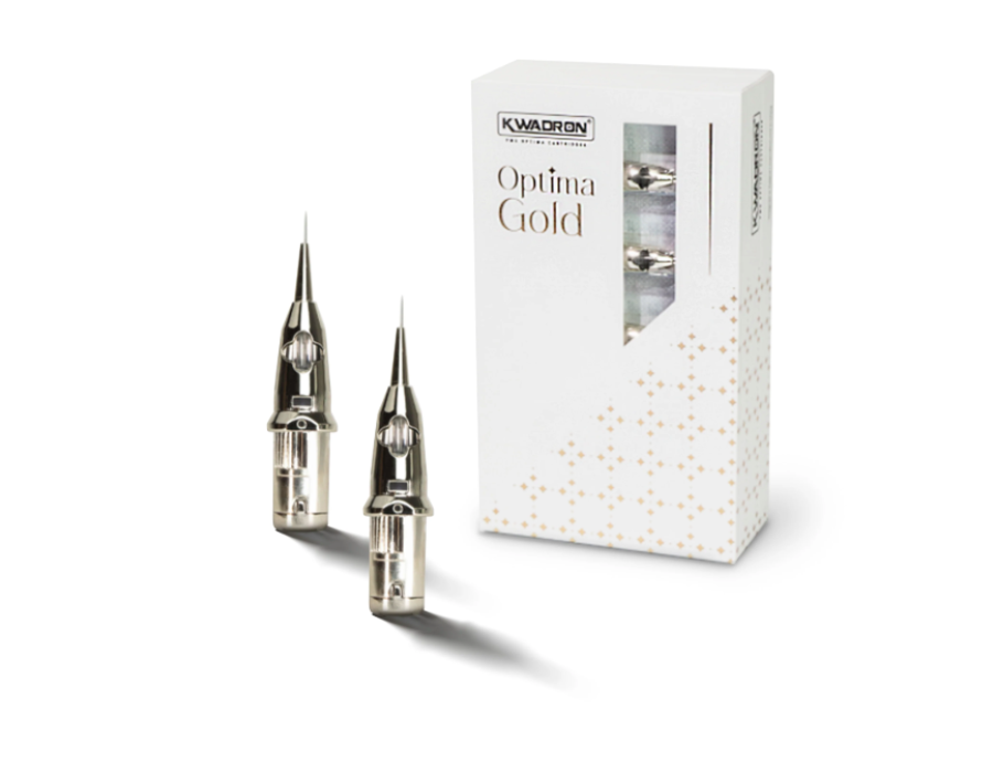 Кожен картридж Kwadron Optima Gold має цільну мембрану та упакований в одноразову стерильну упаковку. У картриджах Optima Gold використовується технологія SoftPro - унікальна система, що стабілізує голку, що вводить пігмент під шкіру.