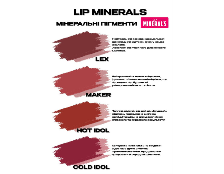 The Mineral “COLD VOLUME” — спеціально створений відтінок для додавання об’єму та виразного акценту на слизовій губ наприкінці роботи. Наноситься пошарово поверх основного тону, підкреслюючи форму та надаючи губам візуальної повноти.