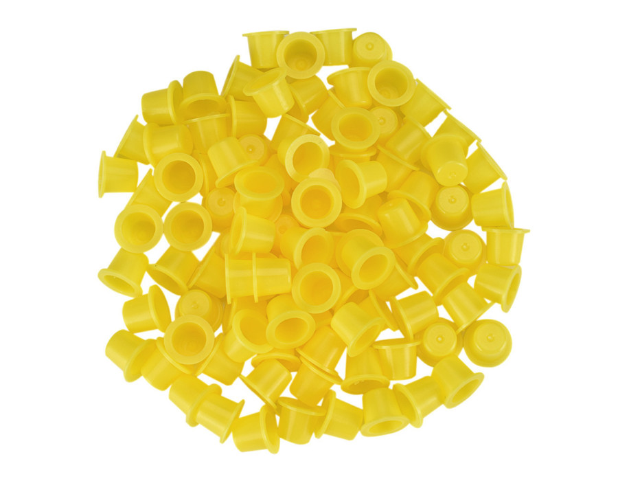 Ковпачки для тату-фарби дозволяють не лише змішувати різні кольори, а й тримати під рукою відразу кілька готових відтінків. Широка основа ковпачка запобігає перекиданню.