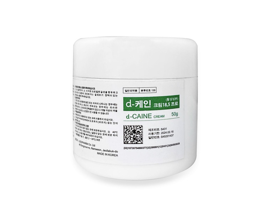 D-Caine відноситься до потужних анестезуючих препаратів. За консистенцією нагадує гель. Його перевага в швидкій дії, тому що через 5-10 хвилин після нанесення на шкірний покрив під плівку настає анестезуючий ефект. Тривалість дії становить від 40 до 90 хвилин, цього часу, як правило, достатньо виконання більшості косметико-перманентних процедур. Не перевищуйте більше 3 грамів (184 міліграми у вигляді лідокаїну) протягом 24 годин.