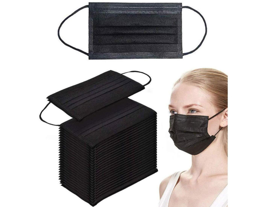 Маска медична одноразова тришарова. Чорна.