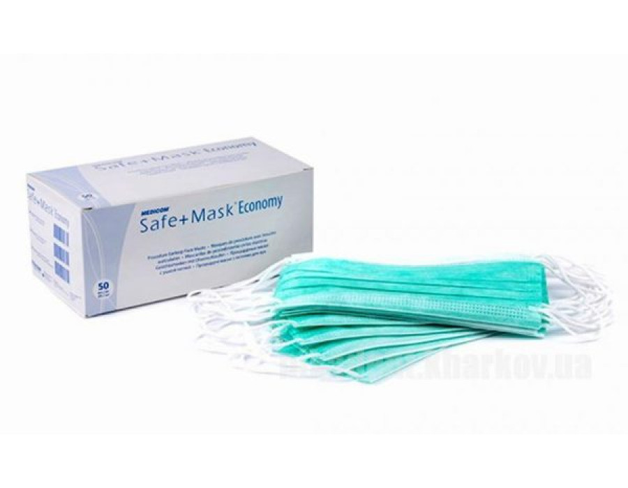 Маска медична тришарова MEDICOM SAFE+MASK ECONOMY (Green).