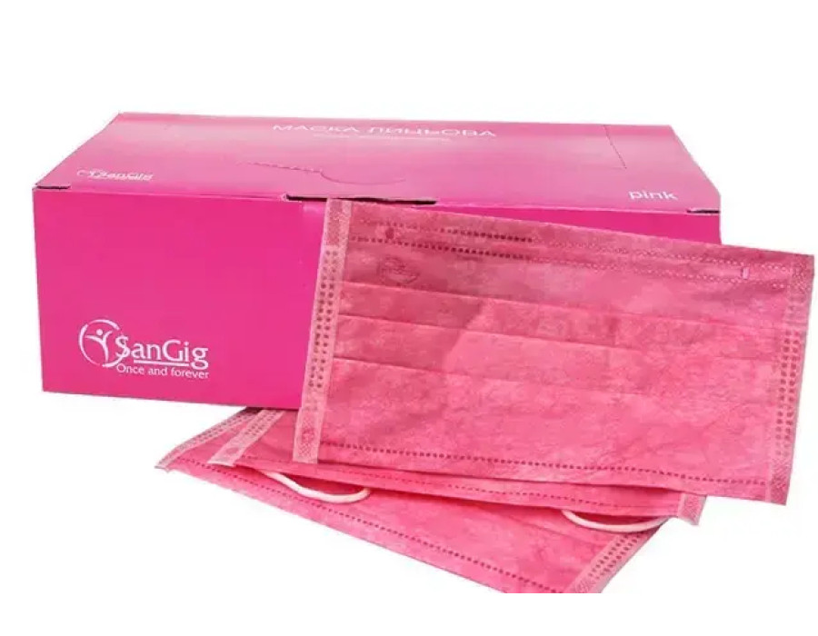 Маски захисні одноразові рожеві, упаковка 50 шт.