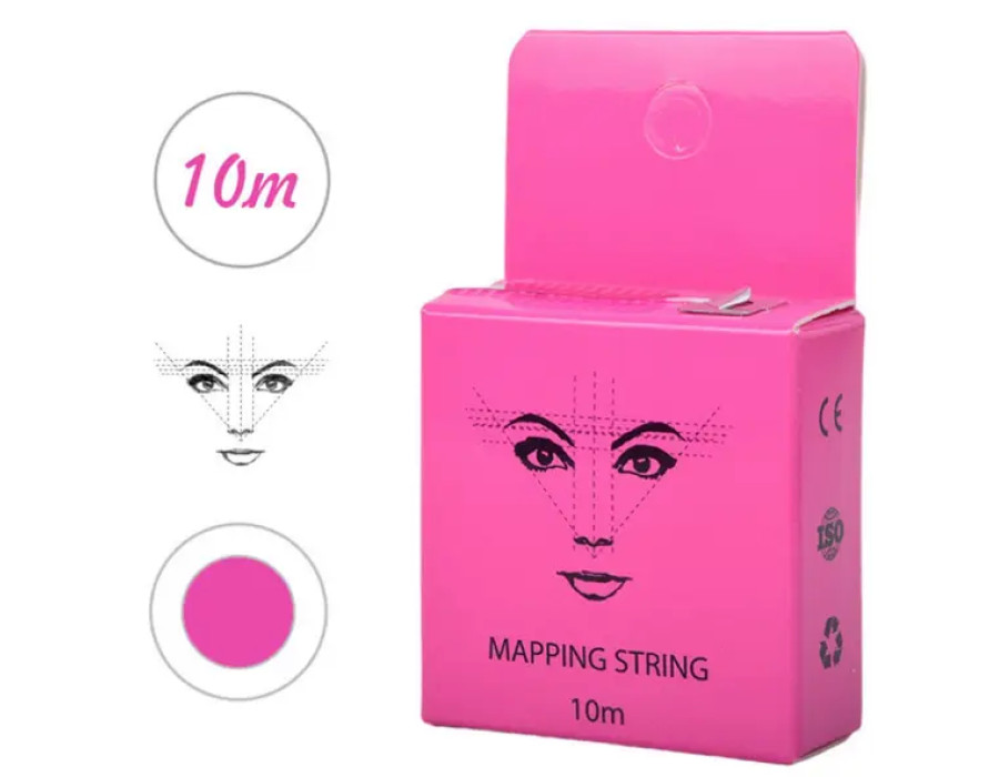На нитку для розмітки вже нанесено барвник, щоб зробити роботу майстра-бровіста максимально швидкою і зручною. Нитка не потребує додаткового фарбування олівцем, вона готова до роботи. За допомогою нитки можна проводити горизонтальні і вертикальні лінії, за якими ставляться контрольні точки.