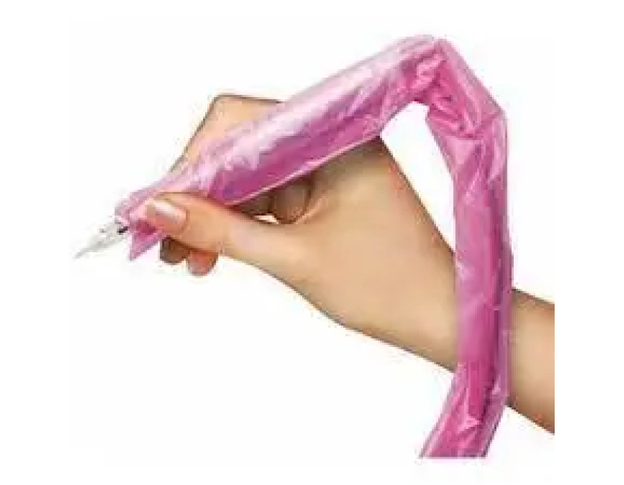 Одноразовий бар'єрний захист надягається на ручку машинки для татуажу та провід перед початком роботи.