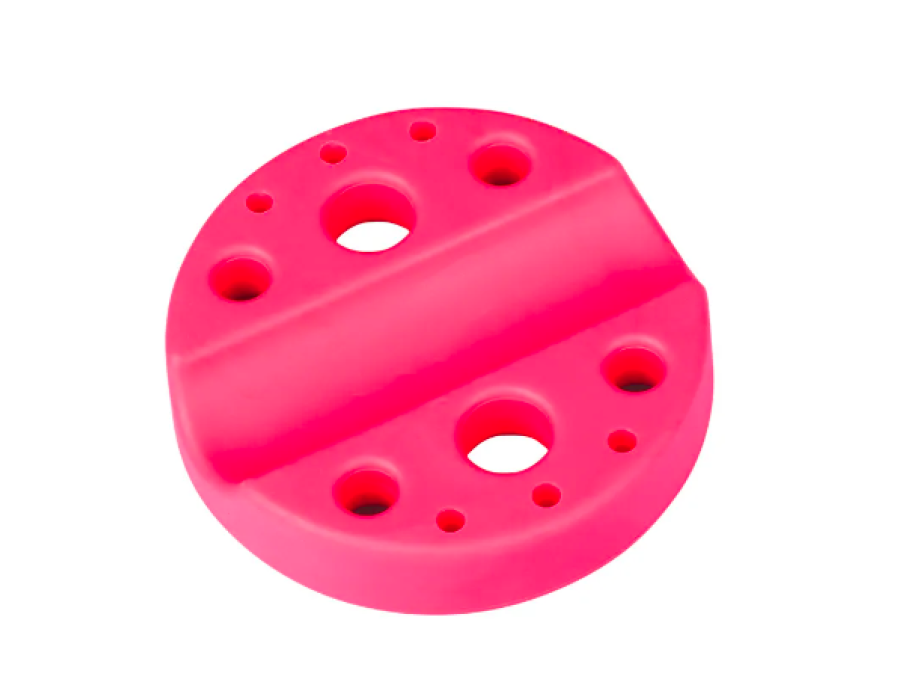 Має отвори різного діаметра. Дуже зручна для кольорових робіт. Рекомендуємо для тих, хто любить самостійно змішувати пігменти. Завдяки підставці Вам не потрібно заставляти робоче місце фарбами різних кольорів, а лише необхідно налити її в ковпачки і кілька кольорів у Вас під рукою. Підставка має поглиблення для зручного розташування тату машинки, комірки для капсів з пігментом та маленькі отвори для мікробрашів та інших дрібних деталей.
