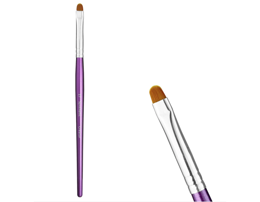 Кисть №17 від бренду Creator Synthetic - багатофункціональна плоска, синтетична кисть з м'якими краями. Ідеально підходить для формування основної деталі в олівцевої техніки макіяжу. Підпорядкування і формування чітких ліній як у макіяжі, так і при роботі з бровами.