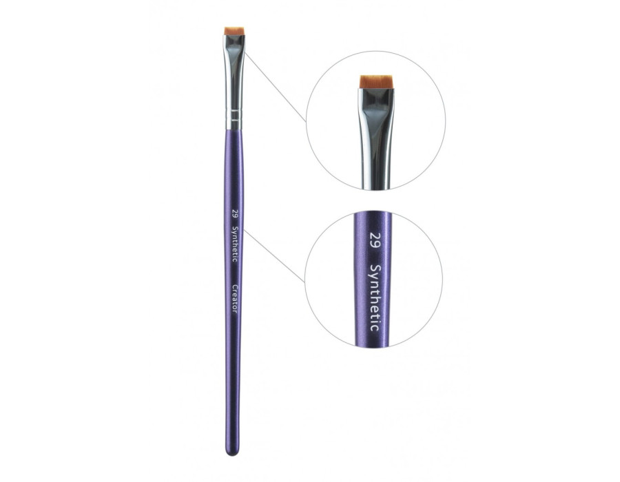 Професійний пензлик, розроблений для процедур фарбування брів. Може використовуватися як у салоні, так і вдома для макіяжу. Завдяки формі та розмірам ворсового пучка, пензлик дозволяє точно та акуратно наносити фарбувальні й косметичні склади, рівномірно розподіляючи їх і не виходячи за контур.
