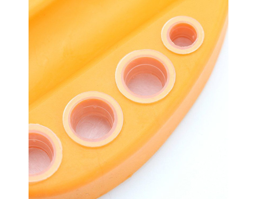 Має отвори різного діаметра. Дуже зручна для кольорових робіт. Рекомендуємо для тих, хто любить самостійно змішувати пігменти. Завдяки підставці Вам не потрібно заставляти робоче місце фарбами різних кольорів, а лише необхідно налити її в ковпачки і кілька кольорів у Вас під рукою.