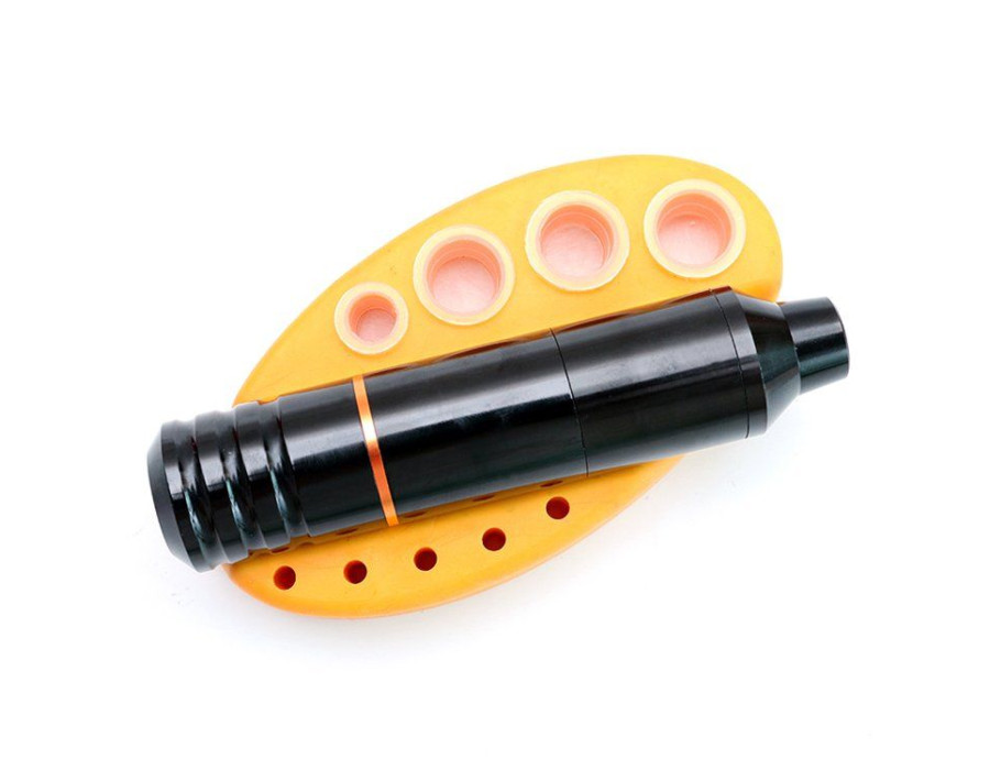 Підставка має поглиблення для зручного розташування тату машинки, комірки для капсів з пігментом та маленькі отвори для мікробрашів та інших дрібних деталей. Необхідний атрибут для роботи тату-майстра.