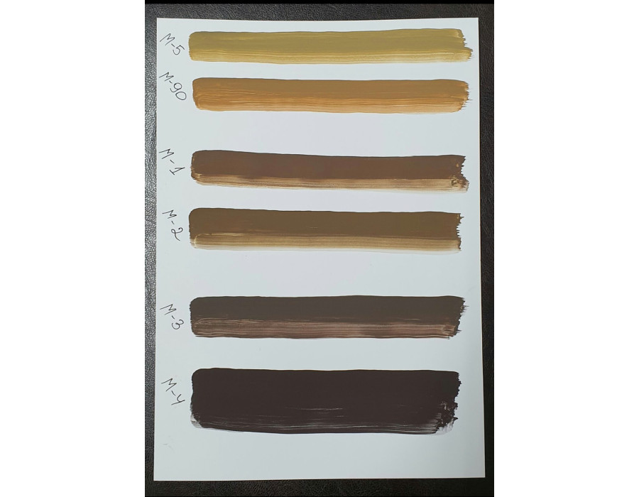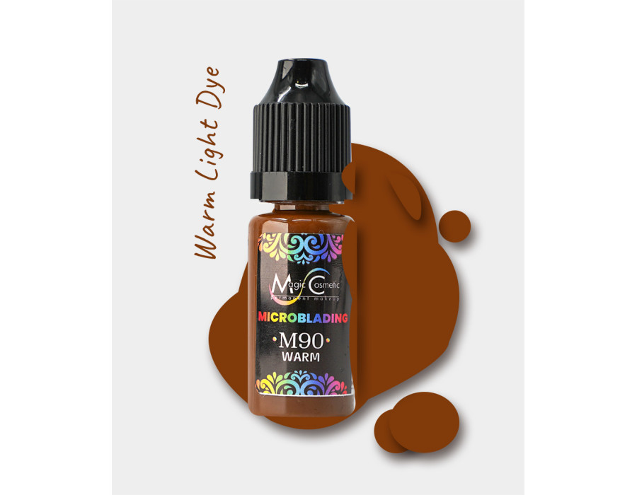 М90 – світло-коричневий пігмент на рудо-жовтій основі. Підходить для холодного типу шкіри чи рудим дівчатам для досягнення натурального кольору брів. Можна використовувати для освітлення з будь-яким темним пігментом цієї лінійки.