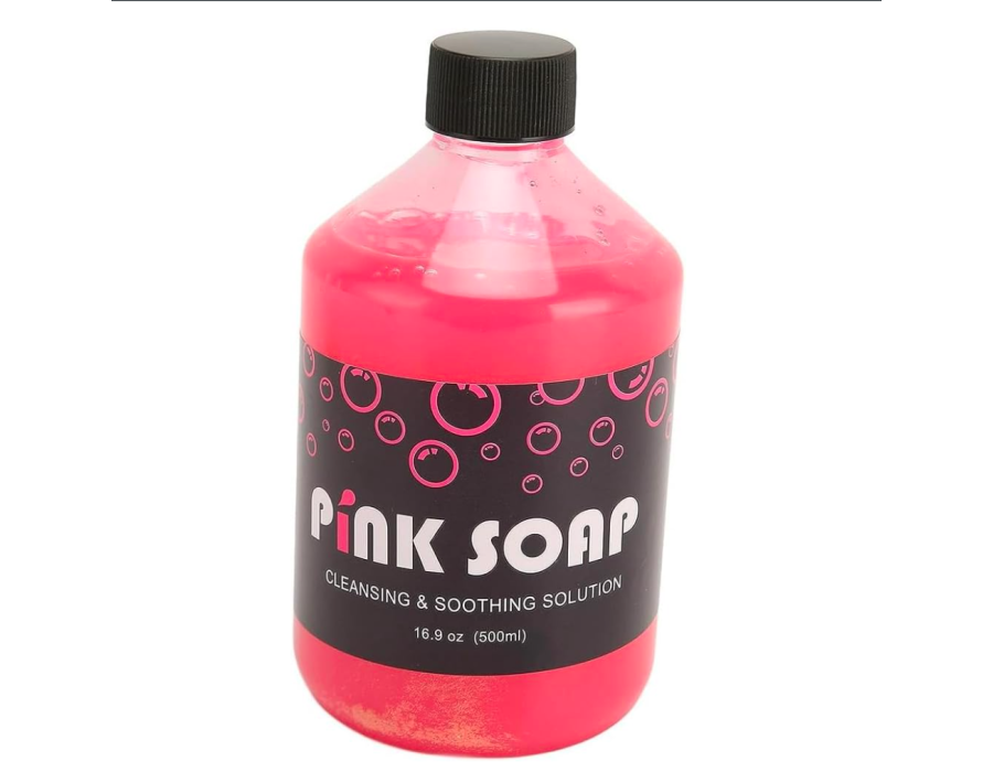 Pink Soap — антисептичне мило, яке відмінно очищає шкіру від вазеліну та пігментів. Ефективна делікатна формула добре змиває забруднення та допомагає зменшити набряк.
