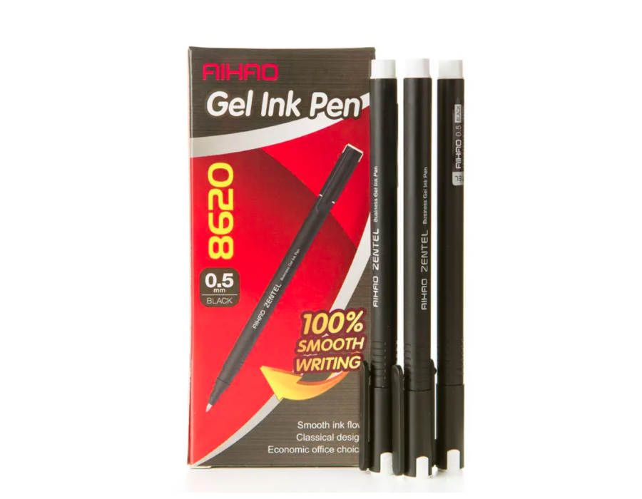 Ручка гелева, чорний корпус, змінний стрижень, товщина 0.5 мм, чорний колір.