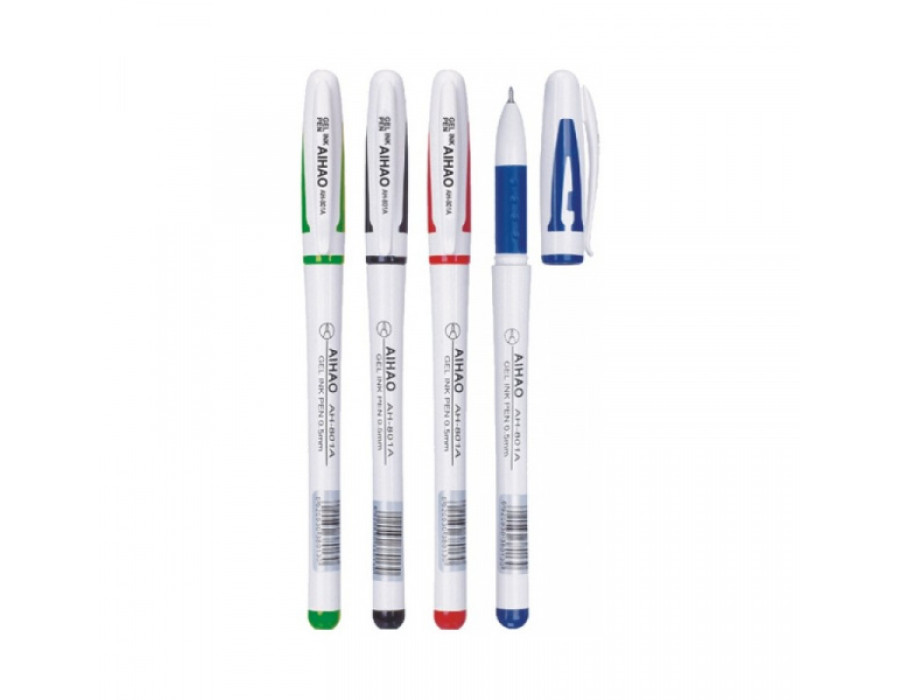 Ручка в білому пластиковому корпусі з кольоровим гумовим утримувачем.