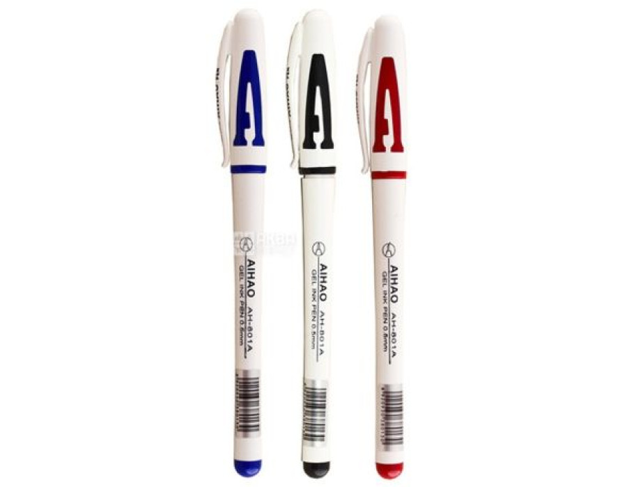 Ручка у білому пластиковому корпусі з кольоровим гумовим тримачем.