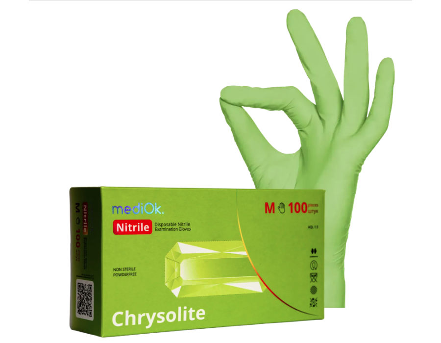 Одноразові рукавички виготовляються на заводі Top Glove Sdn Bhd (Німеччина) – одному із найбільших виробників у світі. Виготовлені із штучного матеріалу нітрилу, що робить їх абсолютно гіпоалергенними. Вироби відрізняються високою стійкістю до впливу хімічних речовин (розчинників, олій, олій, жирів, розчинів). Завдяки м'якості та еластичності нітрилові рукавички м'яко облягають руку, забезпечуючи високий комфорт проведення різноманітних маніпуляцій та процедур.