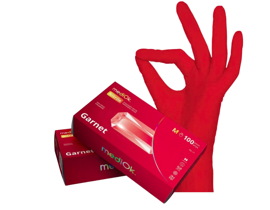 Одноразові рукавички виготовляються на заводі Top Glove Sdn Bhd (Німеччина) – одному із найбільших виробників у світі. Виготовлені із штучного матеріалу нітрилу, що робить їх абсолютно гіпоалергенними. Вироби відрізняються високою стійкістю до впливу хімічних речовин (розчинників, олій, олій, жирів, розчинів). Завдяки м'якості та еластичності нітрилові рукавички м'яко облягають руку, забезпечуючи високий комфорт проведення різноманітних маніпуляцій та процедур.