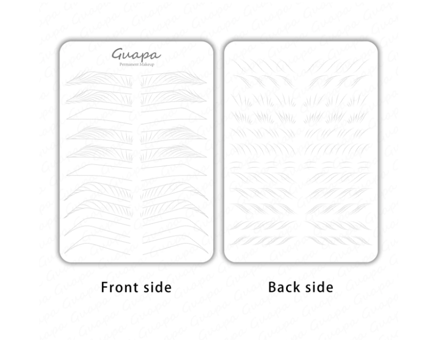 Двостороння тренувальна шкіра для брів Practice Skin Latex. Попередньо намальовані базові штрихи і переходи були розроблені для створення м'язової пам'яті, щоб ви могли швидко виробити стійку звичку. Малюйте криві та відпрацьовуйте інтервали між штрихами. Порожні місця для "зроби сам".