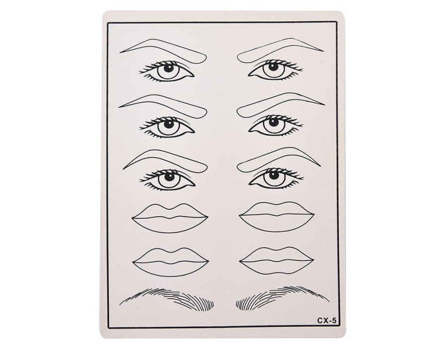 Тренувальна татуаж-панель з різними варіантами зображення "Очі, губи, брови" для відпрацювання навичок постановки руки та різних технік нанесення пігменту.
