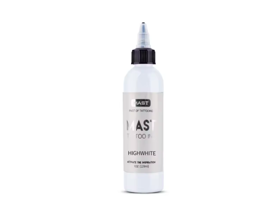Mast Tattoo Ink - це чорнило преміум-класу, створене для того, щоб надати художникам сміливіші, стійкіші кольори. Це чорнило легко вбирається в шкіру, виділяється. HIGH white (абсолютно білий). Чорнило Mast high white, кожна крапля чорнила досягає стану надвисокої насиченості, а густі білі частинки тонера можуть легко відбивати яскраві кольори, освітлювати та відбілювати, а також легко окреслювати чіткі білі лінії.
