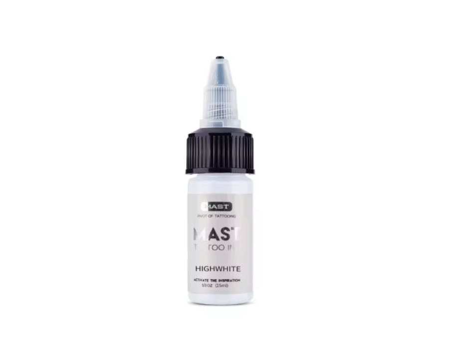 Mast Tattoo Ink - це чорнило преміум-класу, створене для того, щоб надати художникам сміливіші, стійкіші кольори. Це чорнило легко вбирається в шкіру, виділяється. HIGH white (абсолютно білий). Чорнило Mast high white, кожна крапля чорнила досягає стану надвисокої насиченості, а густі білі частинки тонера можуть легко відбивати яскраві кольори, освітлювати та відбілювати, а також легко окреслювати чіткі білі лінії.