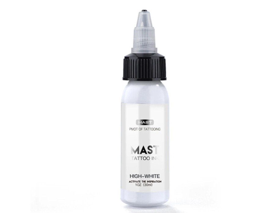 Mast Tattoo Ink - це чорнило преміум-класу, створене для того, щоб надати художникам сміливіші, стійкіші кольори. Це чорнило легко вбирається в шкіру, виділяється. HIGH white (абсолютно білий). Чорнило Mast high white, кожна крапля чорнила досягає стану надвисокої насиченості, а густі білі частинки тонера можуть легко відбивати яскраві кольори, освітлювати та відбілювати, а також легко окреслювати чіткі білі лінії.