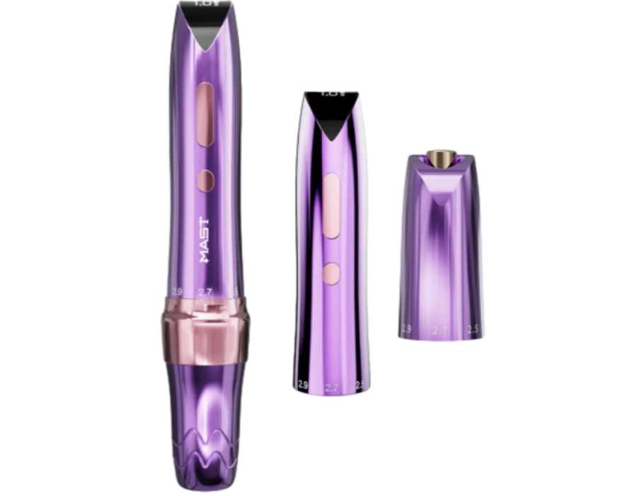 MAST P60 — бездротова тату-машинка для тату та перманентного макіяжу з регульованою довжиною ходу. Вона поєднує елегантний дизайн, потужний двигун та продуману ергономіку. У комплект входять машинка MAST P60, акумулятор та RCA-адаптер, що робить набір універсальним для роботи як у бездротовому, так і в дротовому режимі.