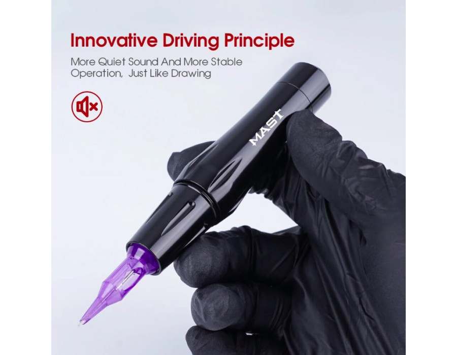 Легка, має збалансовану вагу, вбудований механізм, який не змінює положення модуля при регулюванні виходу голки, має інноваційний максимально практичний зручний магнітний варіант з'єднання шнура з машинкою, який дозволяє продовжити службу шнура в кілька разів.