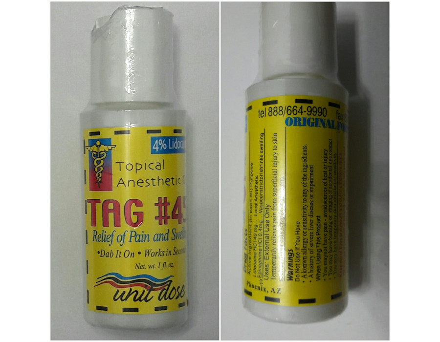 Анестезія у вигляді гелю TAG 45 - це швидкодіючий анестетик вторинної дії. TAG 45 - вторинна анестезія, що добре зарекомендувала себе для татуажу та мікроблейдінгу. Прозорий гель ТАГ 45 значно продовжує та посилює дію первинного анестетика, а також запобігає утворенню гематом, має кровоспинний ефект. Гелева структура дозволяє використовувати препарат дуже економічно. Використовується виключно для поверхневого нанесення!