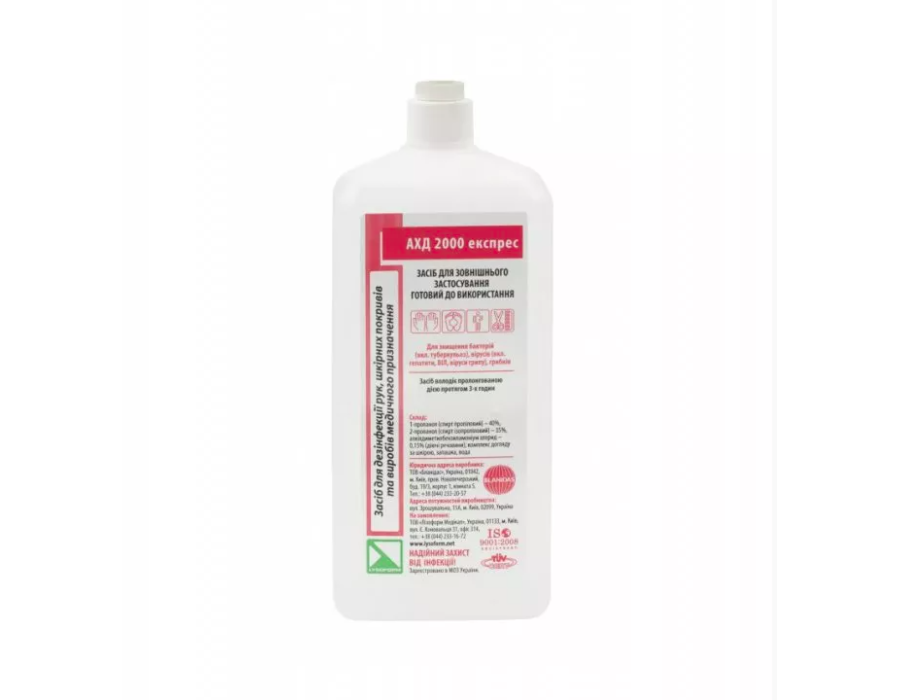 Дієвий дезінфікуючий засіб "АХД 2000 експрес" створено для гігієнічної та хірургічної обробки рук і шкіри, а також для стерилізації невеликих поверхонь. Забезпечує повне знищення небезпечних вірусів і мікробів Завдяки спеціальному складу не пересушує шкіру рук і не викликає роздратування навіть при частому використанні.